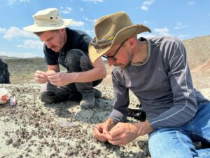 Jérémy Tissier (à gauche) et Thierry Smith (à droite) lors de fouilles dans le Bighorn Basin, Wyoming (États-Unis) © Annelise Folie