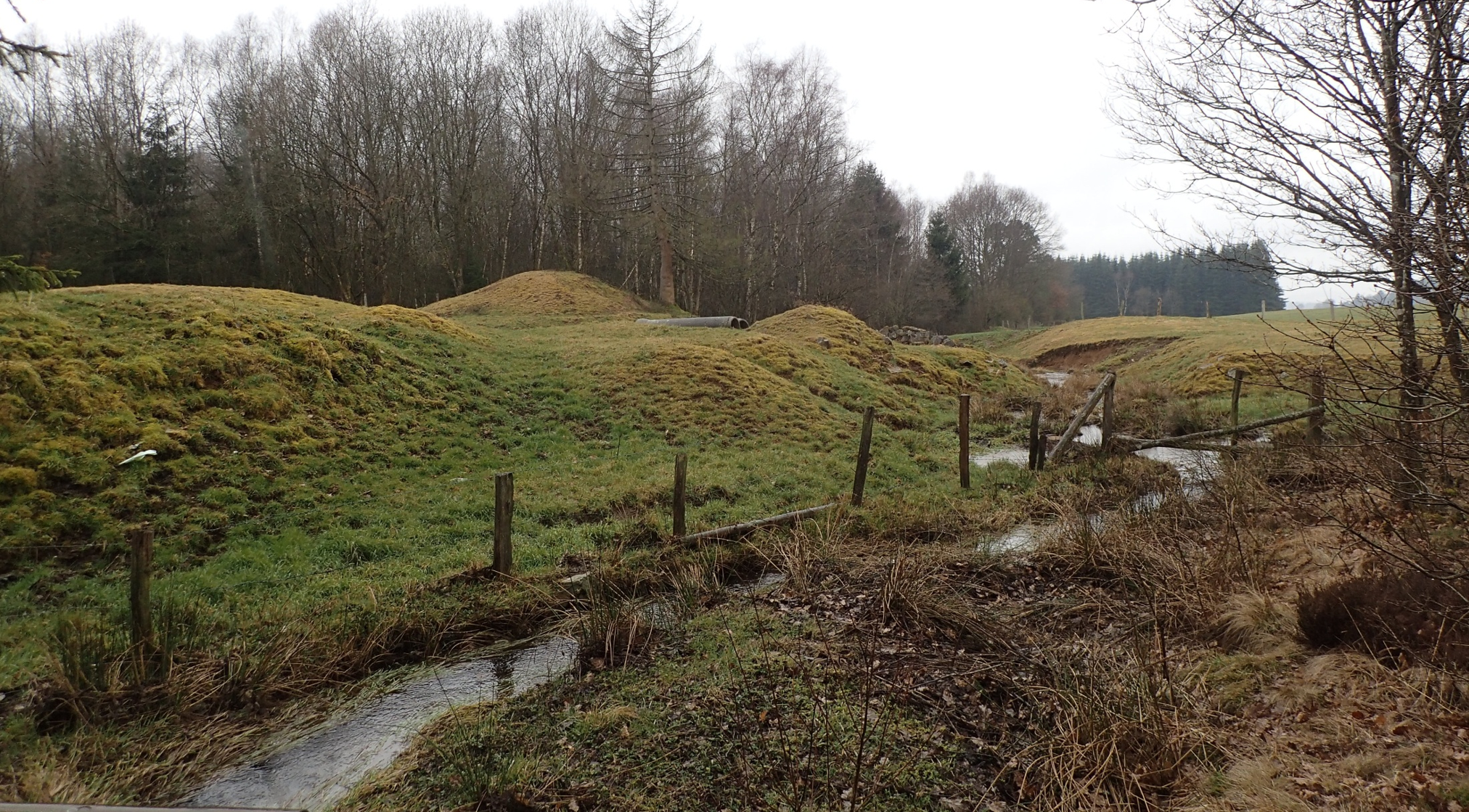 Pour mettre la main sur des grains d’or grands, en moyenne, d’à peine 1 mm (!), les orpailleurs de l’époque ont excavé d’immenses volumes de graviers fluviatiles et de terre, creusant à la main parfois jusqu’à 2,4 mètres de profondeur pour trouver une couche d’alluvions d’intérêt. Le paysage actuel porte encore, par endroit, les traces de cette ruée vers l’or ardennaise : un relief chaotique, marqué par des monticules et des tranchées toujours bien visibles, bien qu’en partie comblées par les rejets d’orpaillage provenant de l’amont.