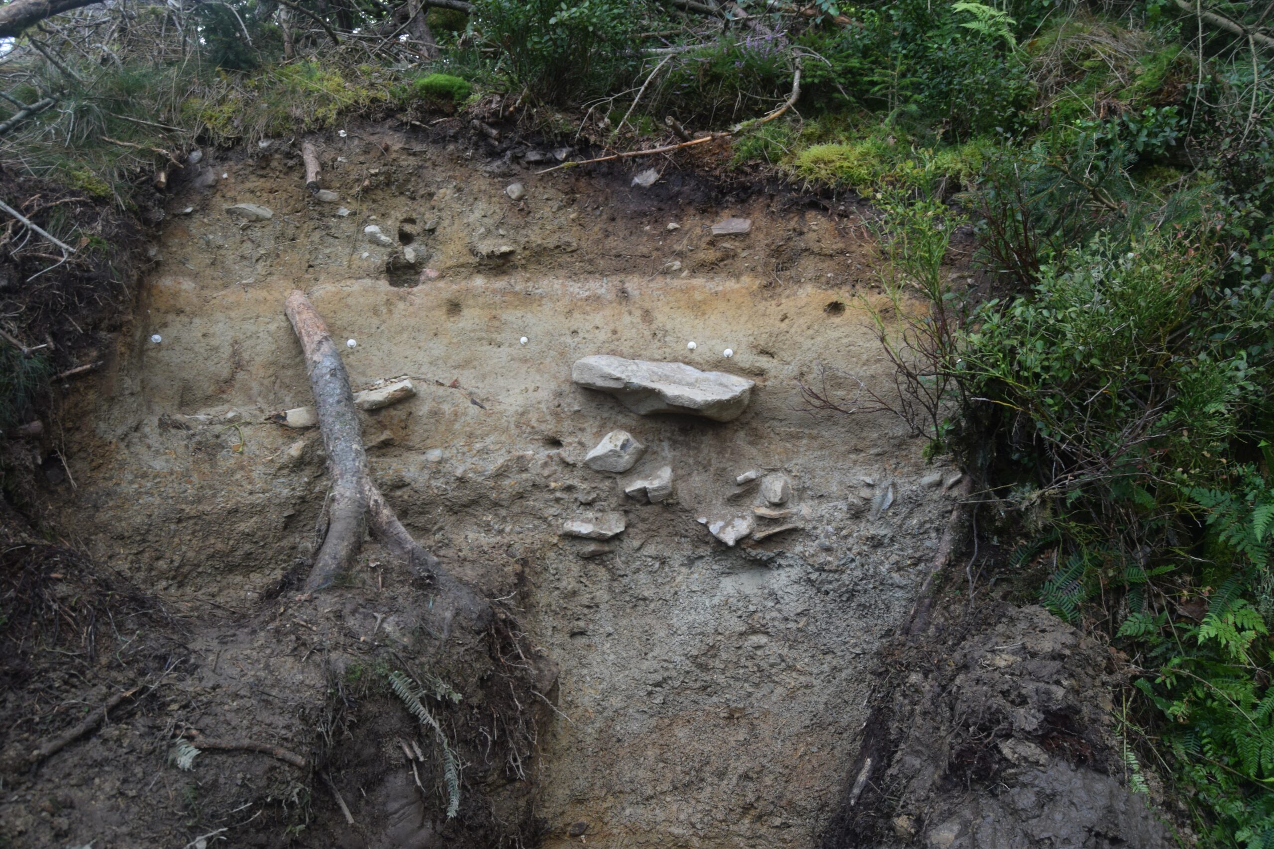 En 2024, une coupe stratigraphique a été réalisée dans un monticule à Bèche, dans le massif de Stavelot. Au sommet de cette coupe, se trouve un tertre reposant sur des dépôts naturels correspondant à une ancienne plaine alluviale périglaciaire. « À l’interface entre le tertre et ces dépôts en place, une couche de charbon de bois, sur une largeur d’environ 30 cm, a été découverte fortuitement. Notre hypothèse est que cette couche soit contemporaine de l’édification du tertre. »