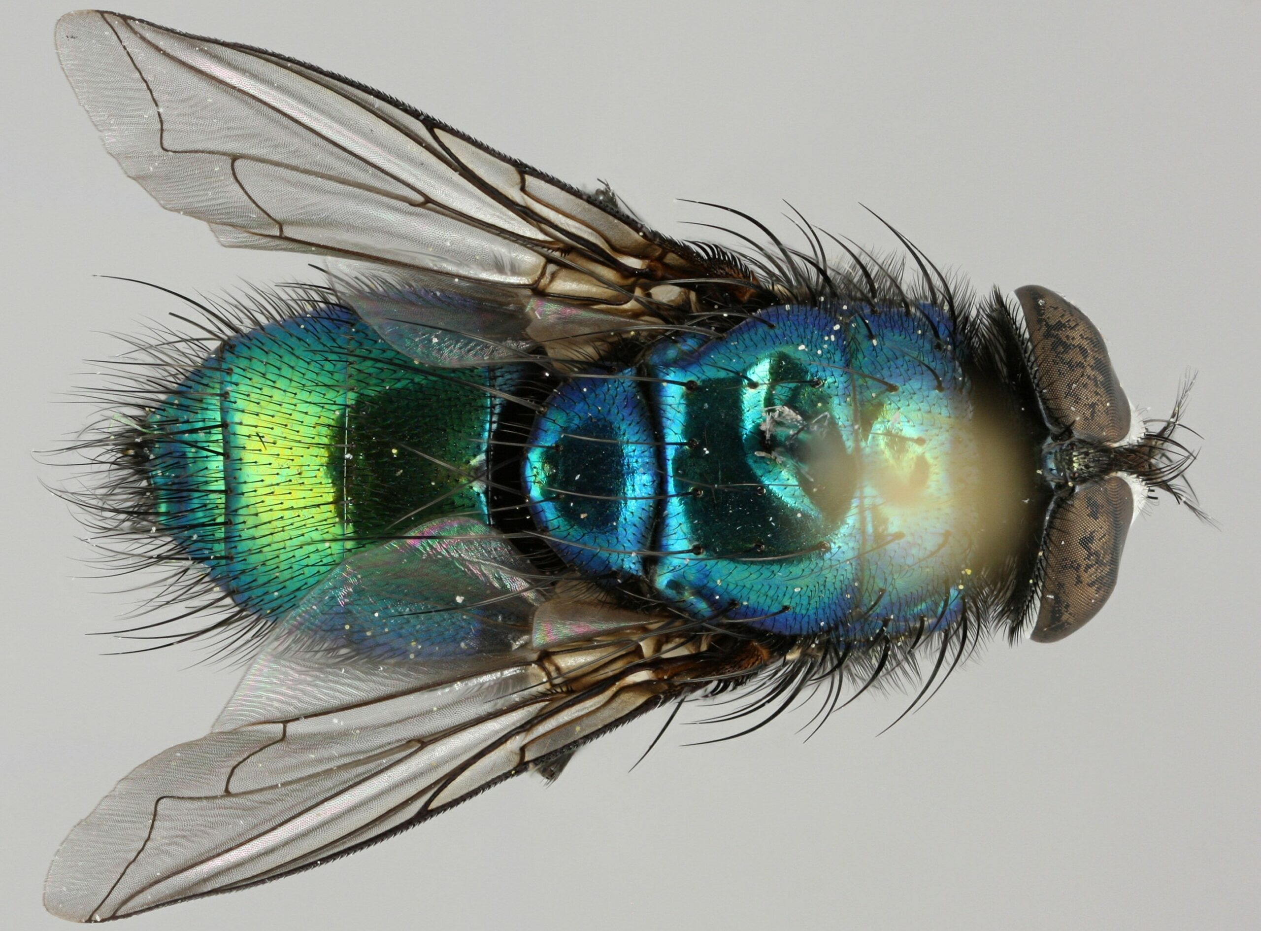 L’étude s’est concentrée sur deux espèces bien connues de la famille de mouches : Calliphora vicina, la célèbre mouche bleue de la viande, et Lucilia richardsi, reconnaissable à ses reflets verts.